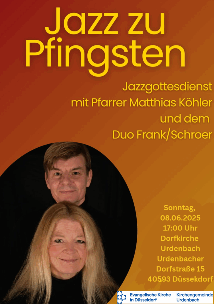 08.06.2025 um 17 Uhr: Jazz-Gottesdienst an Pfingstsonntag Mit anschließendem kleinen Umtrunk in der Kirche.