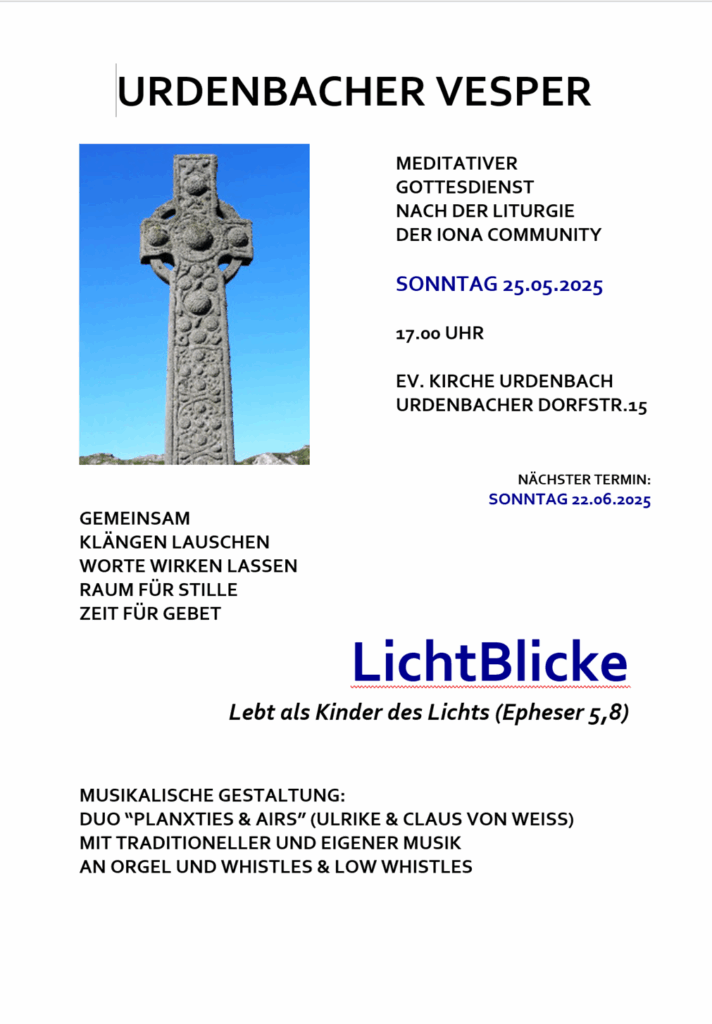 25.05.2025: Urdenbacher Vesper um 17 Uhr