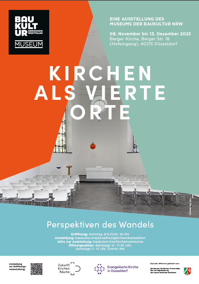 Viele Kirchen stehen heute leer oder sind von Abriss bedroht – zugleich bleiben sie bedeutende Orte der Gemeinschaft, Erinnerung und Identität. Das Museum der Baukultur NRW widmet sich in seiner Ausstellung „Kirchen als Vierte Orte – Perspektiven des Wandels“ der Frage, wie Kirchen als Räume für Begegnung, Spiritualität und gesellschaftlichen Dialog neu gedacht werden können.