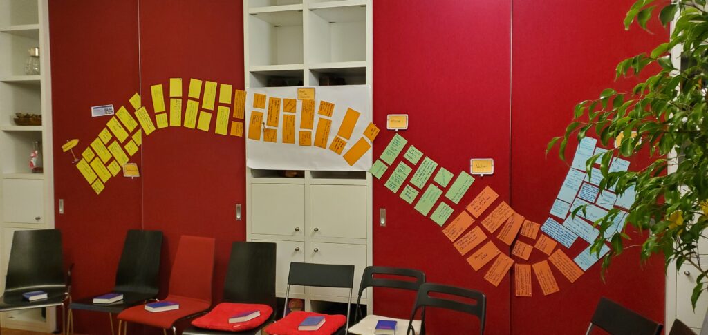 Einmal im Monat findet das Treffen statt und stellt eine kleine Insel im umtriebigen Alltag dar, der immer wieder viel von uns fordert, seien es berufliche Anforderungen, Familienalltag, die Pflege von Angehörigen oder das alleinige Bewältigen des Alltags. Dann tut es gut, für eine Stunde zusammenzukommen, Gemeinschaft zu erfahren, ein Gebet zu sprechen, zu singen und sich nach einem kurzen Impuls gemeinsam über ein Thema auszutauschen, wie zum Beispiel die Jahreslosung, Gottesbilder, Dankbarkeit, … Keine klassische Bibelarbeit, kein klassischer Gebetskreis – eine gute Mischung.