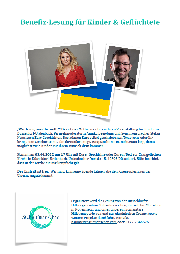 Benefiz-Lesung für Kinder & Geflüchtete am 03.04.2022 um 17 Uhr in der Dorfkirche