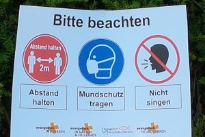 einer kurzen Predigt. Über Pfarrer Nell-Wunsch aus der Gemeinde Düsseldorf-Süd, der die Fürbitten las und wo gemeinsam das Vaterunser gebetet wurde, erreichten die wandelnden Gottesdienstbesucher die letzte Station bei Pfarrer Matthias Köhler, der die Segensworte sprach. Anders als gewohnt – wie so vieles zur Zeit – Kirche auf neuen Wegen. Kirche mitten im Leben – im Treiben der Spaziergänger und rollerfahrenden Kinder. Gottesdienst ohne Musik. Glaube wieder gemeinsam erfahren und die stärkenden, guten Worte hören und im Herzen wirken und wachsen lassen.