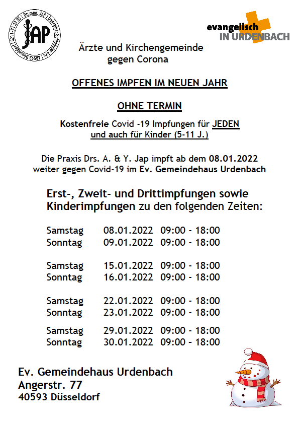 Auch hier gilt dann wieder: Ohne Termin einfach im Gemeindehaus vorbeikommen und am besten die bereits ausgedruckten und ausgefüllten Unterlagen mitbringen. Da durch Ärzte geimpft wird, stehen diese auch für Gespräche mit den Impfwilligen zur Verfügung.