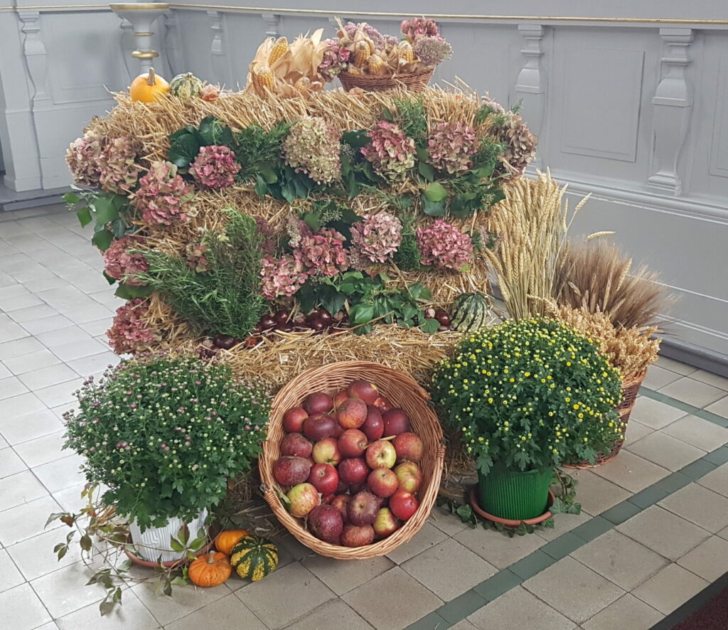 Leider fiel der große Erntedankumzug in Urdenbach auch dieses Jahr pandemiebedingt aus. Aber Gottesdienst feiern und als Gemeinde zusammenkommen war zum Glück möglich. Der Gottesdienst wurde von den Kindern der Kita Hochstraße und Kita Südallee mitgestaltet, die mit Gesang und Puppenspiel die Gemeinde begeisterten.