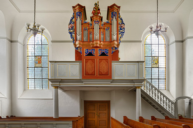 Die von Johann Wilhelm Schöler (1723-1793) im Jahre 1754 eingebaute Orgel existiert in ihrer ursprünglichen Form seit 1885 nicht mehr. Davon übrig geblieben war lediglich der historische Prospekt mit der König-David-Skulptur. Das zuletzt vorhandene Instrument im Innern des Gehäuses stammte aus dem Jahr 1958. Die Orgel von Schöler wurde 2013 mit Hilfe historischer Zeichnungen und der Kenntnis über die Bauweise Schölers rekonstruiert und am 1. Advent 2013 eingeweiht.