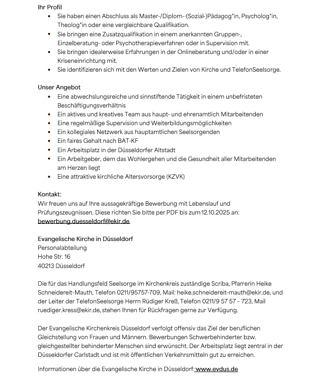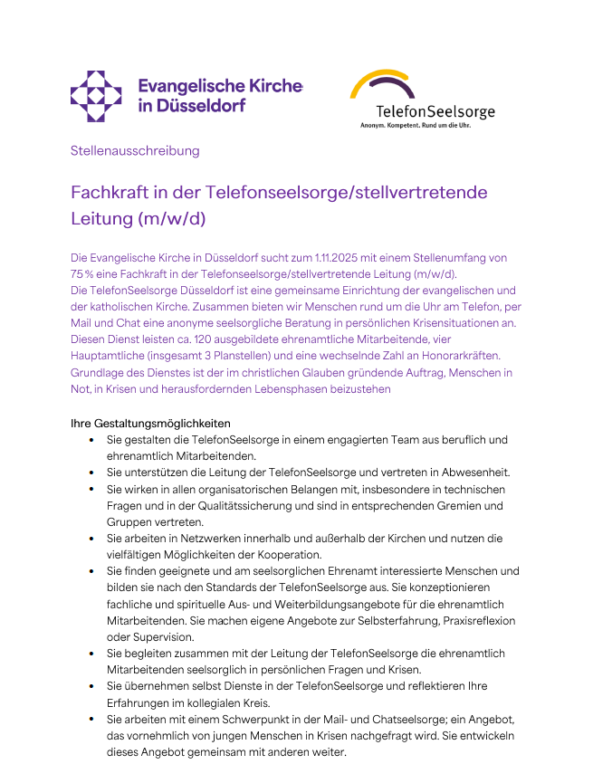 Fachkraft in der Telefonseelsorge/stellvertretende Leitung (m/w/d)