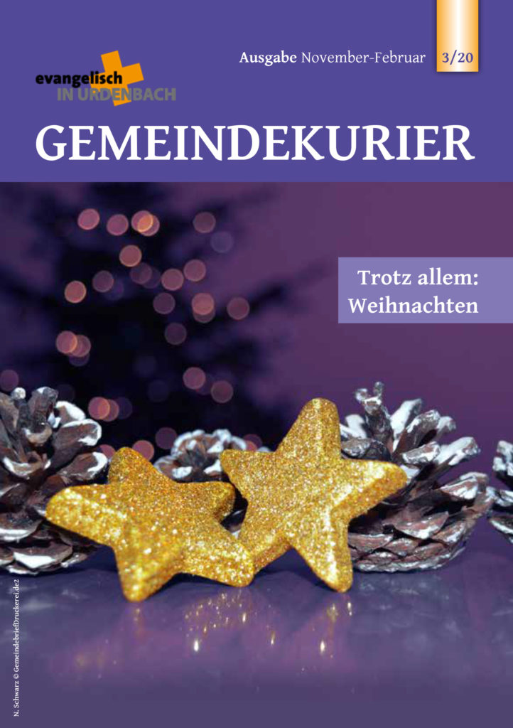 Gemeindekurier 3/2020 Liebe Gemeindemitglieder und Freunde der Evangelischen Kirche Urdenbach, der Gemeindekurier 2020/03 steht bereits jetzt Online zum Lesen bereit. Wir wünschen viel Freude beim Lesen.