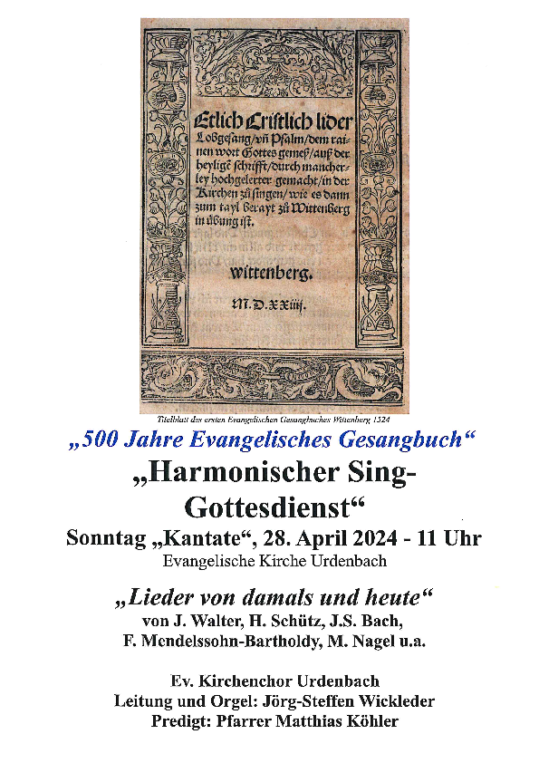 Harmonischer Sing-Gottesdienst am Sonntag, 28.4.2024, um 11 Uhr