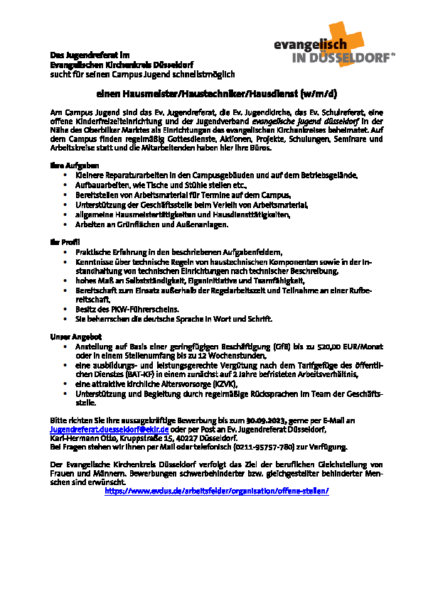 Hausmeister/Haustechniker/Hausdienst (w/m/d)