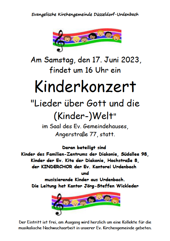 Kinderkonzert am 17. Juni um 16 Uhr im Gemeindehaus