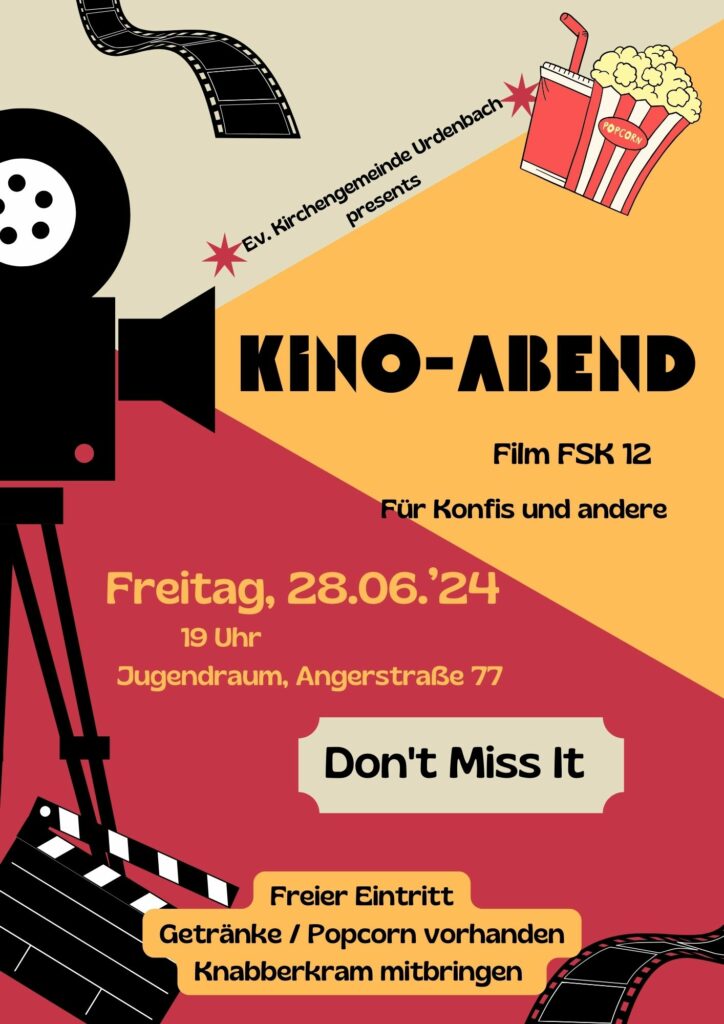 Kino-Abend am 28.06.2024 Am kommenden Freitag findet der nächste Kino-Abend im Jugendraum, Gemeindehaus Angerstraße statt. Ab 19 Uhr wird ein Film (FSK 12 – der Titel darf leider aus rechtlichen Gründen hier nicht genannt werden) gezeigt. Eintritt ist frei.