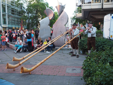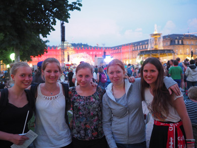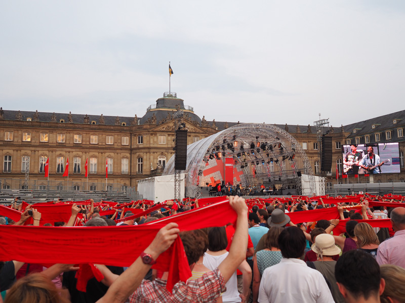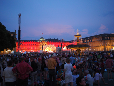 Leichter fiel uns das Warten auf die Konzerte im geschützten Schatten der wenigen Bäume. Neben Wise Guys und Andreas Bourani haben wir am Abschlussabend auf der Bühne am Schlossplatz u.a. Judy Bailey persönlich, aber auch die Urdenbacher Falk & Sons singen und spielen gehört.