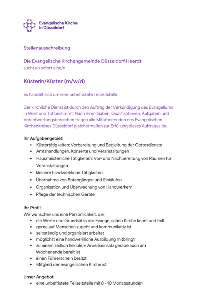 Küsterin/Küster (m/w/d)