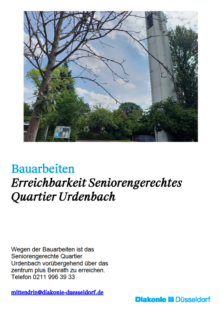 In Urdenbach gibt es, verglichen mit dem übrigen Stadtgebiet, überdurchschnittlich viele „ältere Erwachsene“. Die Menschen leben gern im „Dorf mit Herz“ und wollen auch im Alter gerne hier wohnen bleiben. „Mittendrin“ ist ein Angebot der Diakonie Düsseldorf mit dem Ziel, die sozialen Verknüpfungen zu stärken und das Zusammenleben der Generationen im Stadtteil zu fördern.