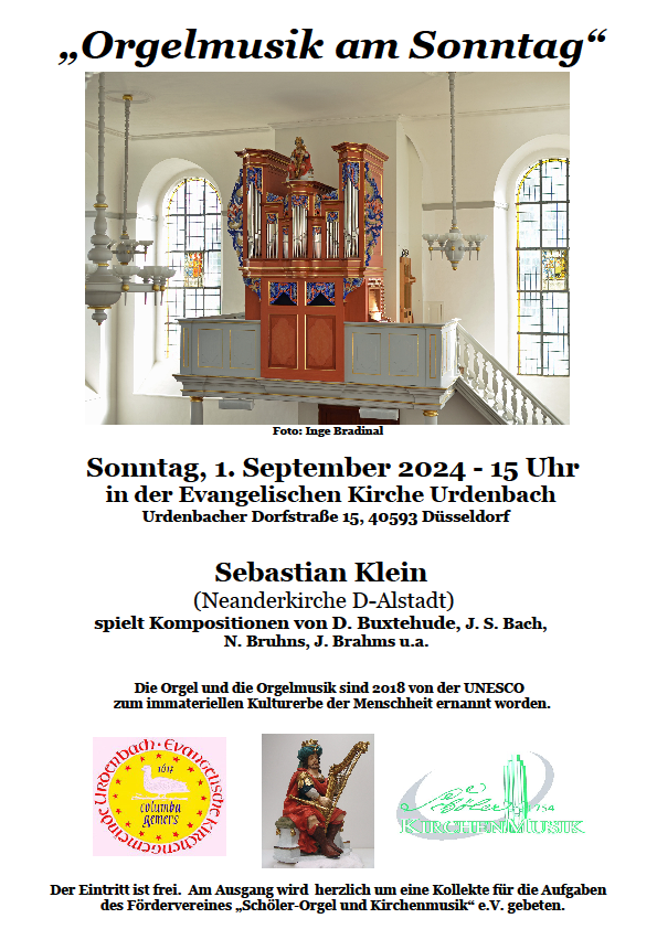 Orgelmusik am Sonntag, 1.September um 15 Uhr