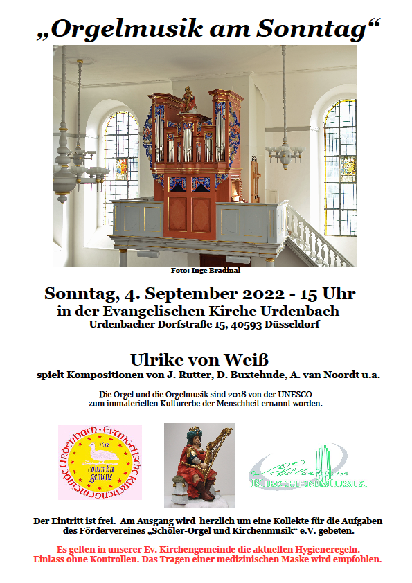 Orgelmusik am Sonntag am 04.09.2022 um 15 Uhr mit Ulrike von Weiß