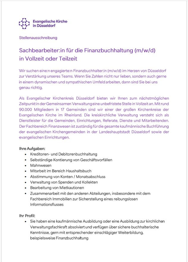 Sachbearbeiter:in für die Finanzbuchhaltung (m/w/d) in Vollzeit oder Teilzeit