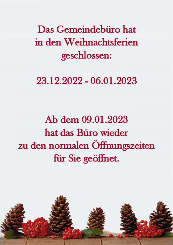 Das Gemeindebüro hat in den Weihnachtsferien geschlossen.