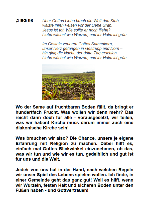 Sonntag 7. Februar 2021 (Sexagesimae): Andacht zu Lk.8,4-8