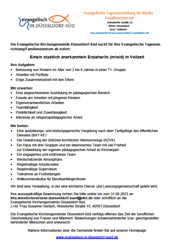 Staatlich anerkannte/n Erzieher/in (m/w/d) in Vollzeit
