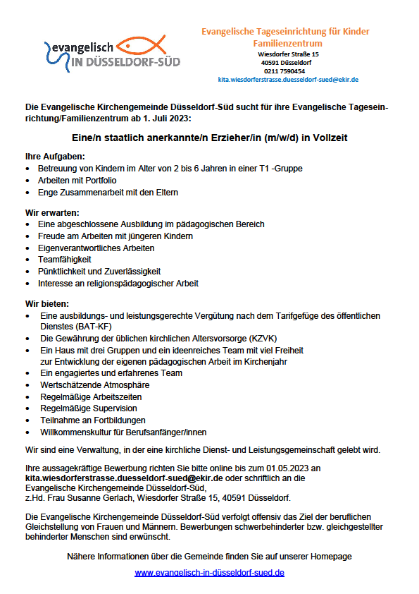 Staatlich anerkannte/n Erzieher/in (m/w/d) in Vollzeit
