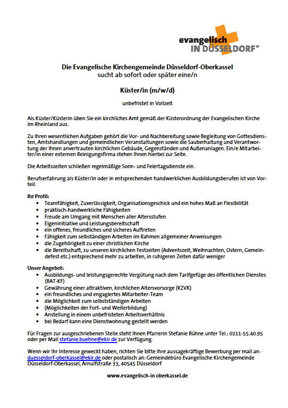Küster/in in der Ev. Kirchengemeinde Oberkassel