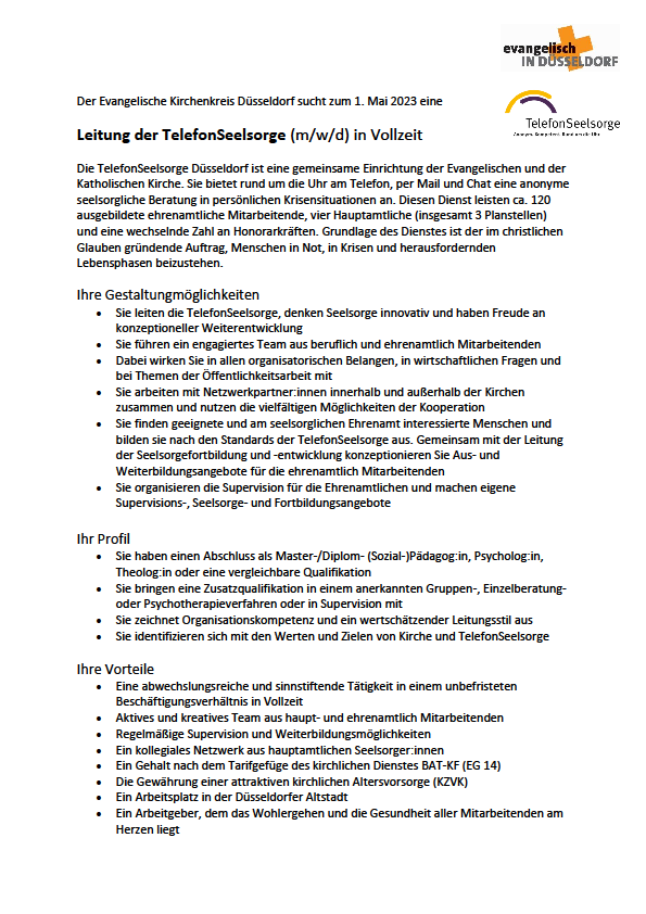 Leitung der TelefonSeelsorge (m/w/d) in Vollzeit