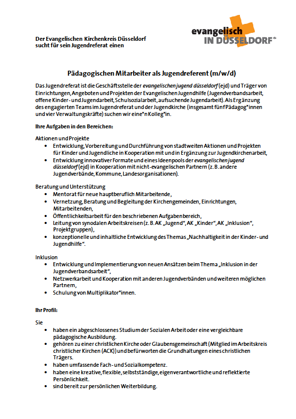 Pädagogischer Mitarbeiter als Jugendreferent (m/w/d)