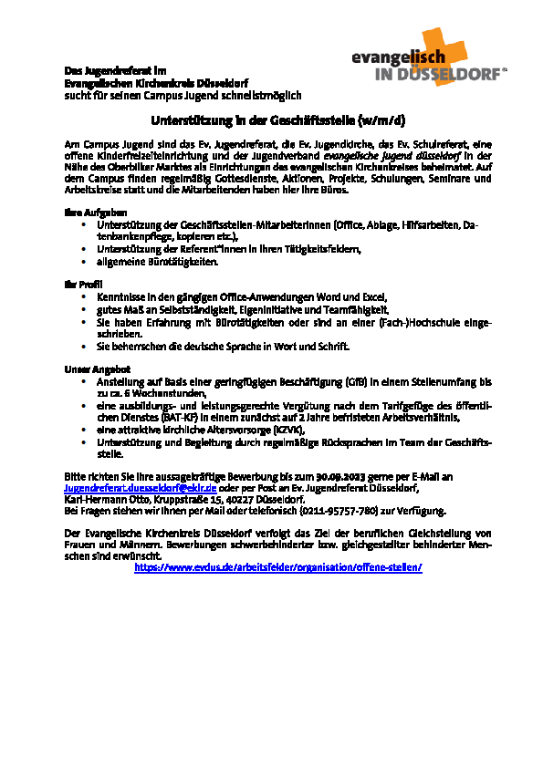 Unterstützung in der Geschäftsstelle (w/m/d)