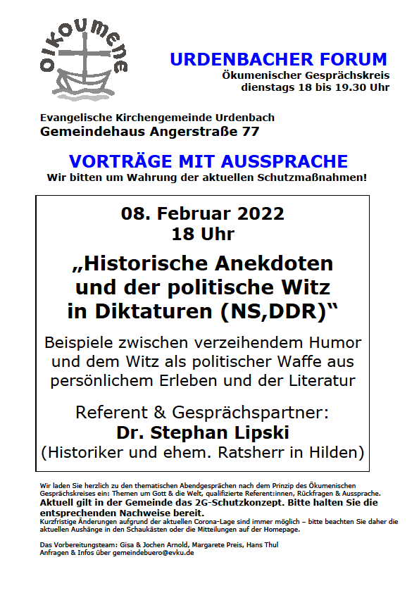 Urdenbacher Forum am 08.02.2022 – Historische Anekdoten und der politische Witz in Diktaturen