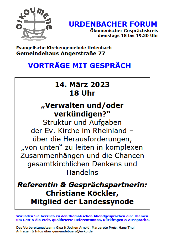 Urdenbacher Forum am 14.03.2023 um 18 Uhr