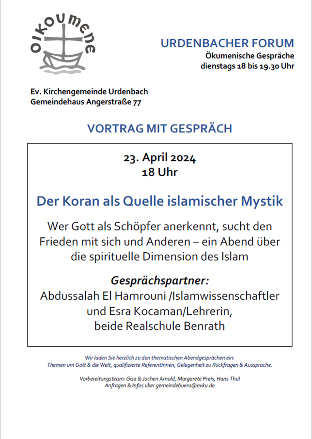 Der Koran als Quelle islamischer Mystik: Wer Gott als Schöpfer anerkennt, sucht den Frieden mit sich und Anderen – ein Abend über die spirituelle Dimension des Islam