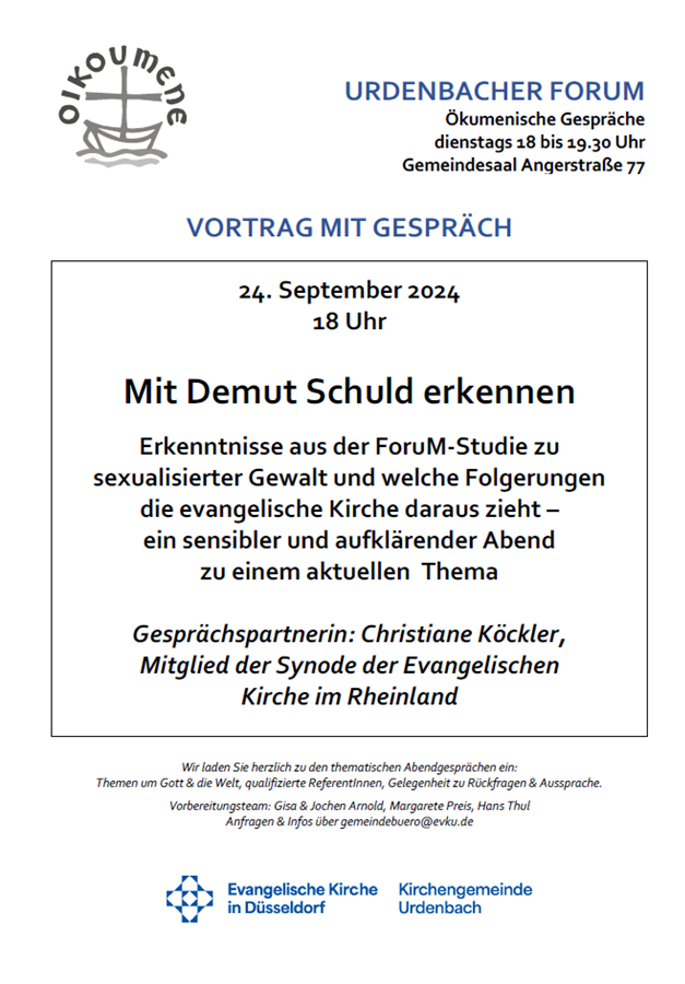 Erkenntnisse aus der ForuM-Studie zu sexualisierter Gewalt und welche Folgerungen die evangelische Kirche daraus zieht – ein sensibler und aufklärender Abend zu einem aktuellen Thema.