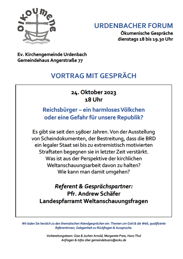 Urdenbacher Forum am 24.10.2023 ab 18 Uhr