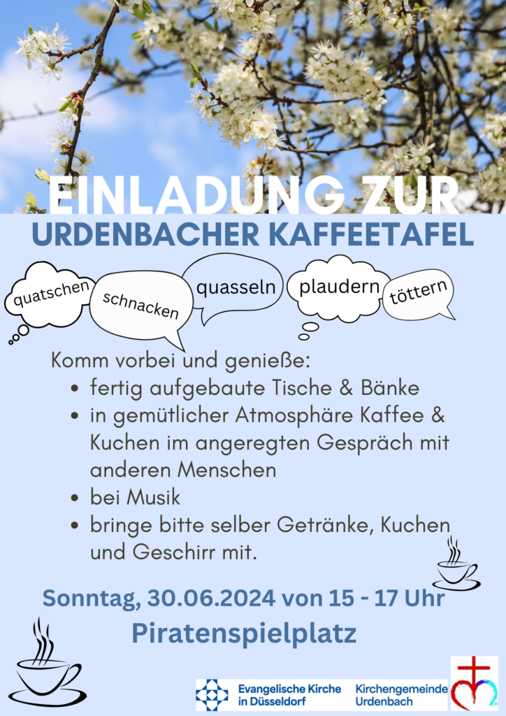 Jetzt am Sonntag, den 30. Juni, findet von 15.00 bis 17.00 Uhr die erste Urdenbacher Kaffeetafel auf dem