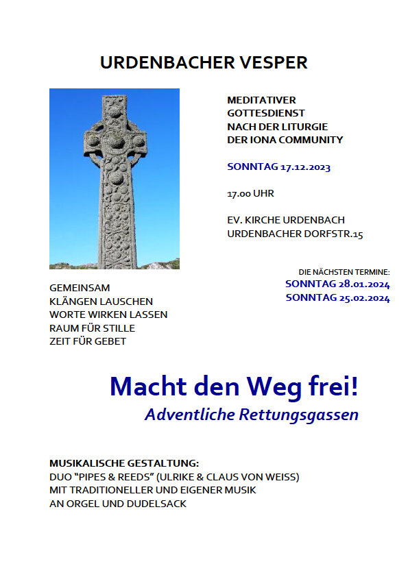 Urdenbacher Vesper am 17.12.2023 um 17 Uhr