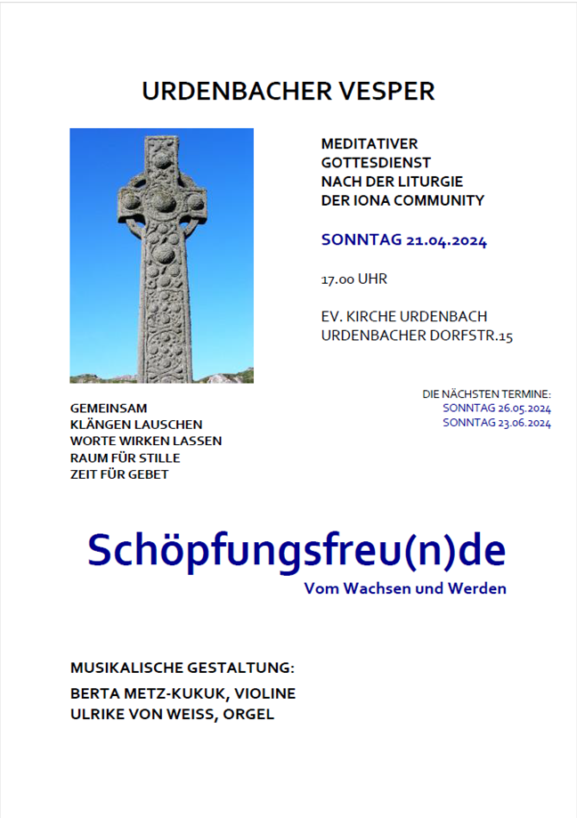 Urdenbacher Vesper am 21.04.2024 um 17 Uhr