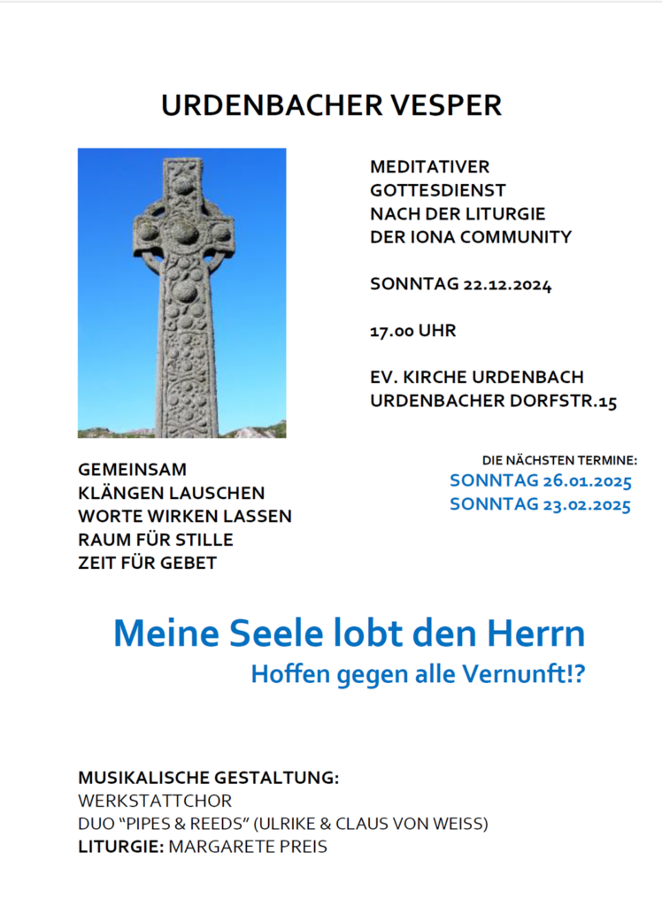 Urdenbacher Vesper am 22.12.2024 um 17 Uhr