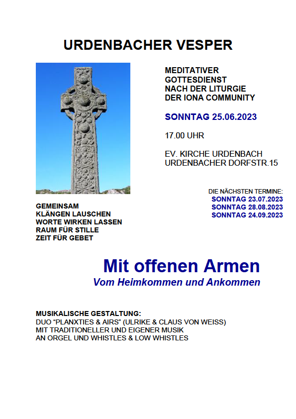 Urdenbacher Vesper am 25.06.2023 um 17 Uhr mit Pfarrer Köhler